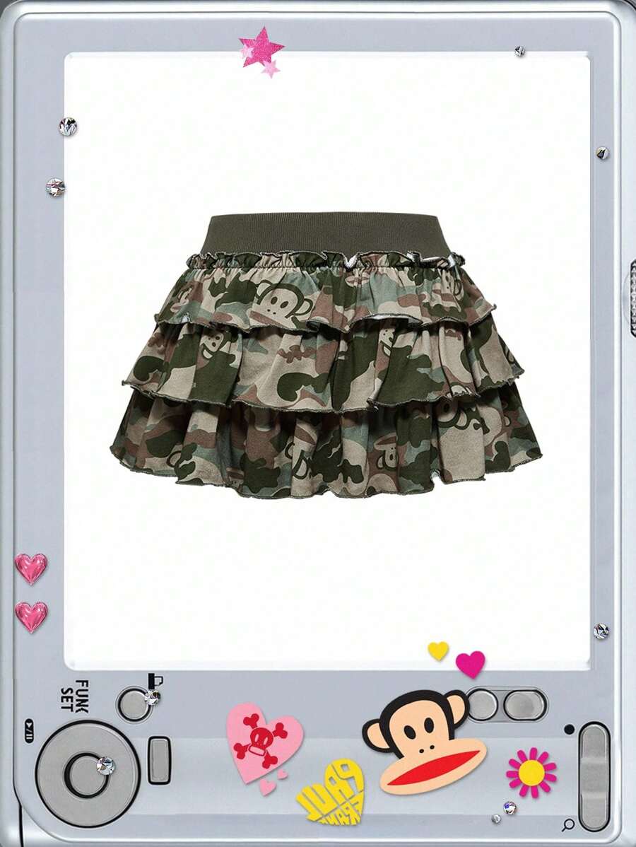 Paul Frank X ROMWE Minifalda elástica con decoración de strass con estampado de camuflaje y dibujos animados estilo Y2K vintage para mujer