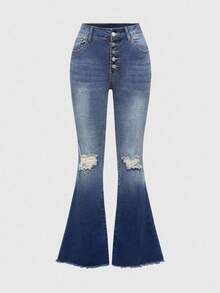 Grunge Punk Jeans acampanados vintage desgastados con bolsillos para mujer