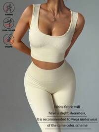 2 piezas Traje deportivo inconsútil, chándal, conjunto de gimnasio, camiseta sin mangas acanalada, shorts de motorista