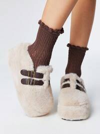 Kawaii Zapatillas de mujer tipo mocasín blancas, cálidas y esponjosas, botines y botas cortas