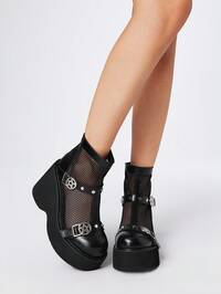 Grunge Punk Botas de mujer con plataforma, estilo estudiantil, con malla transpirable y hueco, versión coreana 2025