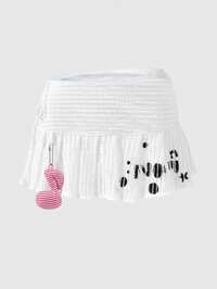 Anime 1 pieza Falda extendedora con volantes texturados de estilo universitario Y2K blanca decorada con notas musicales, falda de capa con tirantes laterales, adecuada para combinar con vaqueros y pantalones casuales, falda de estética de estilo universitario