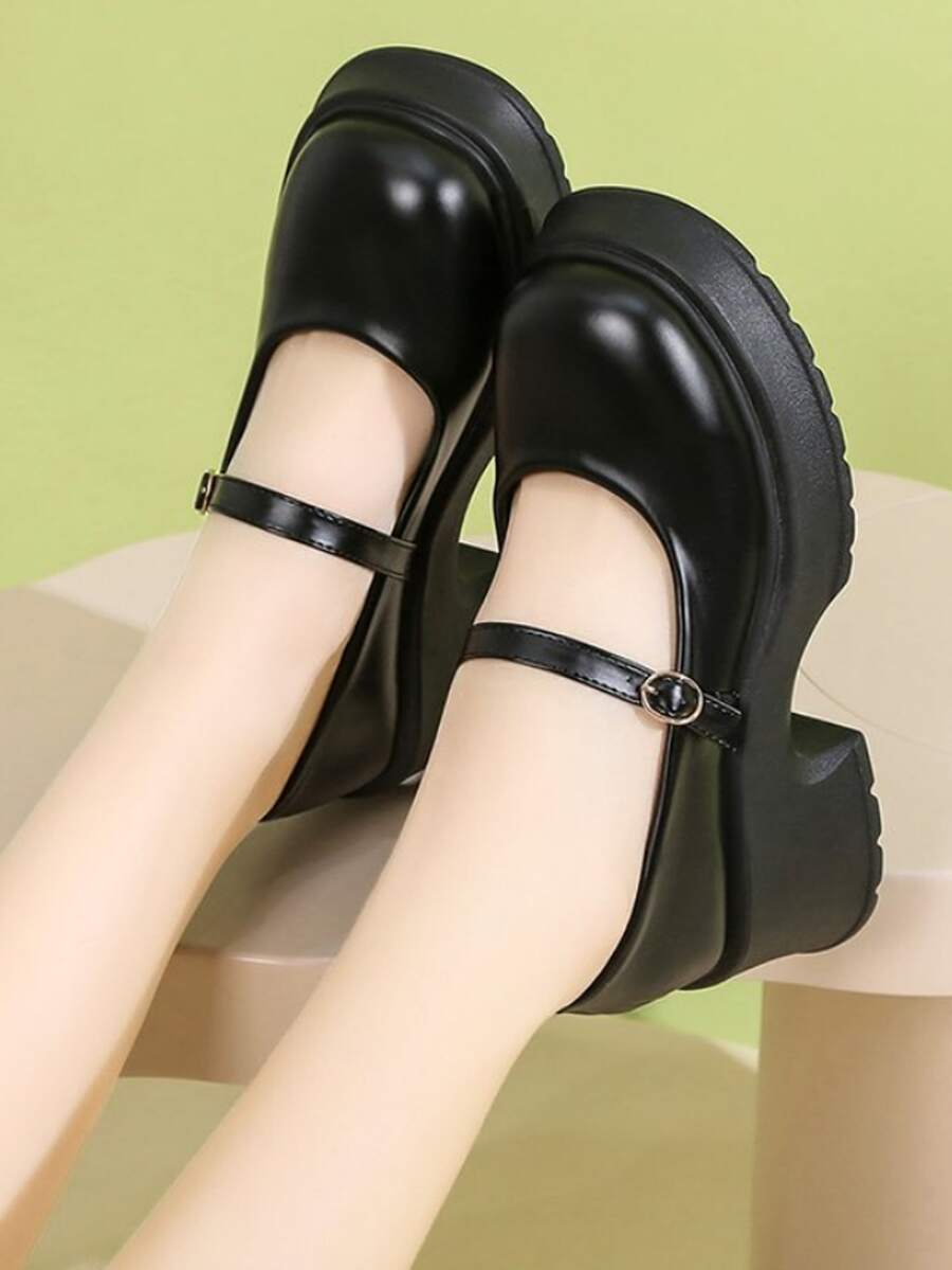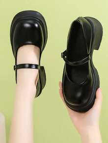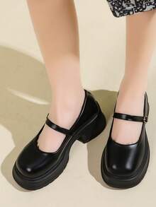 Mujer Zapatos mary jane con diseño de hebilla punta redonda plataforma preppy negro