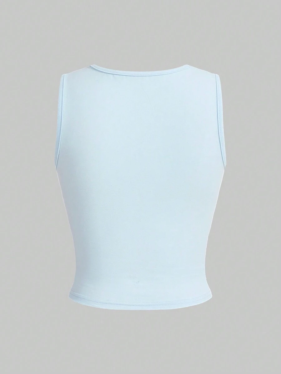 Kawaii Camiseta de tirantes de mujer con estampado de nubes, cuello redondo, sin mangas, para primavera y verano
