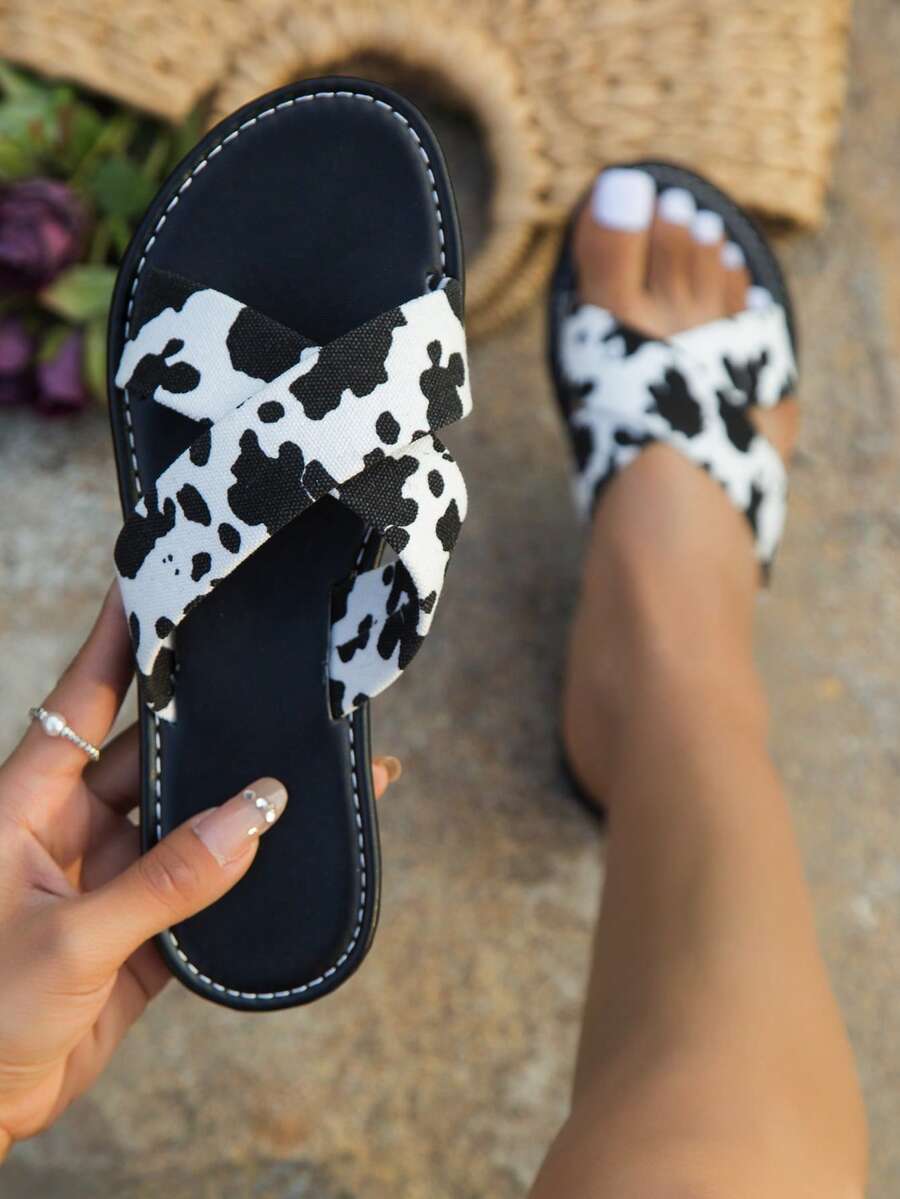 Mujer Sandalias planas con patrón de vaca con tira cruzada casual exterior
