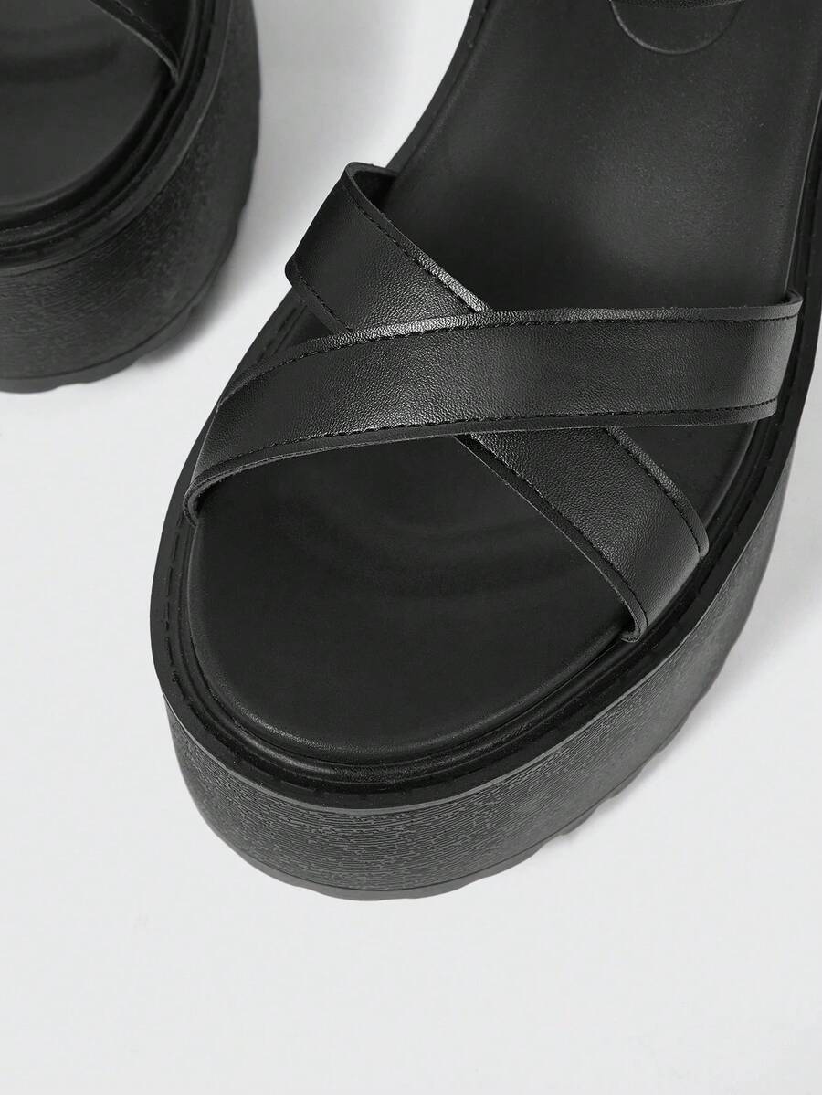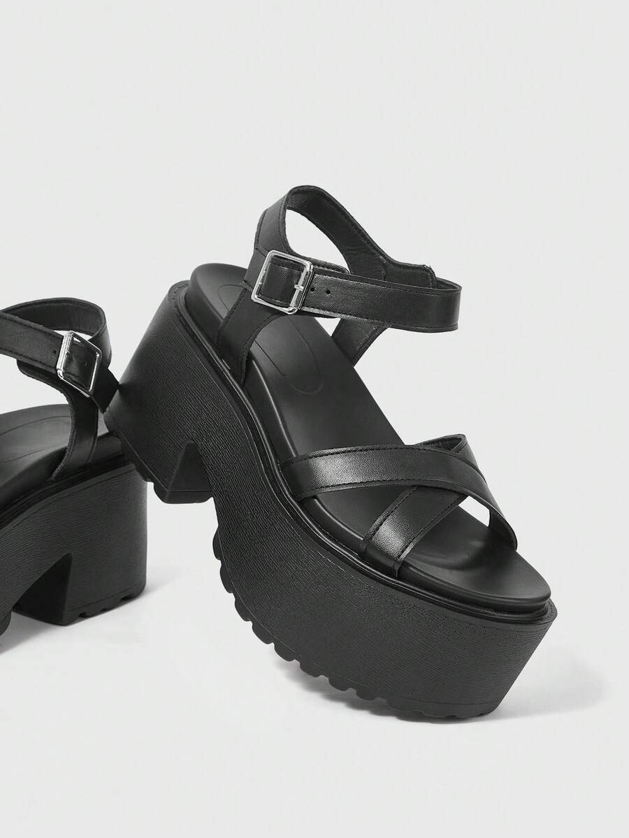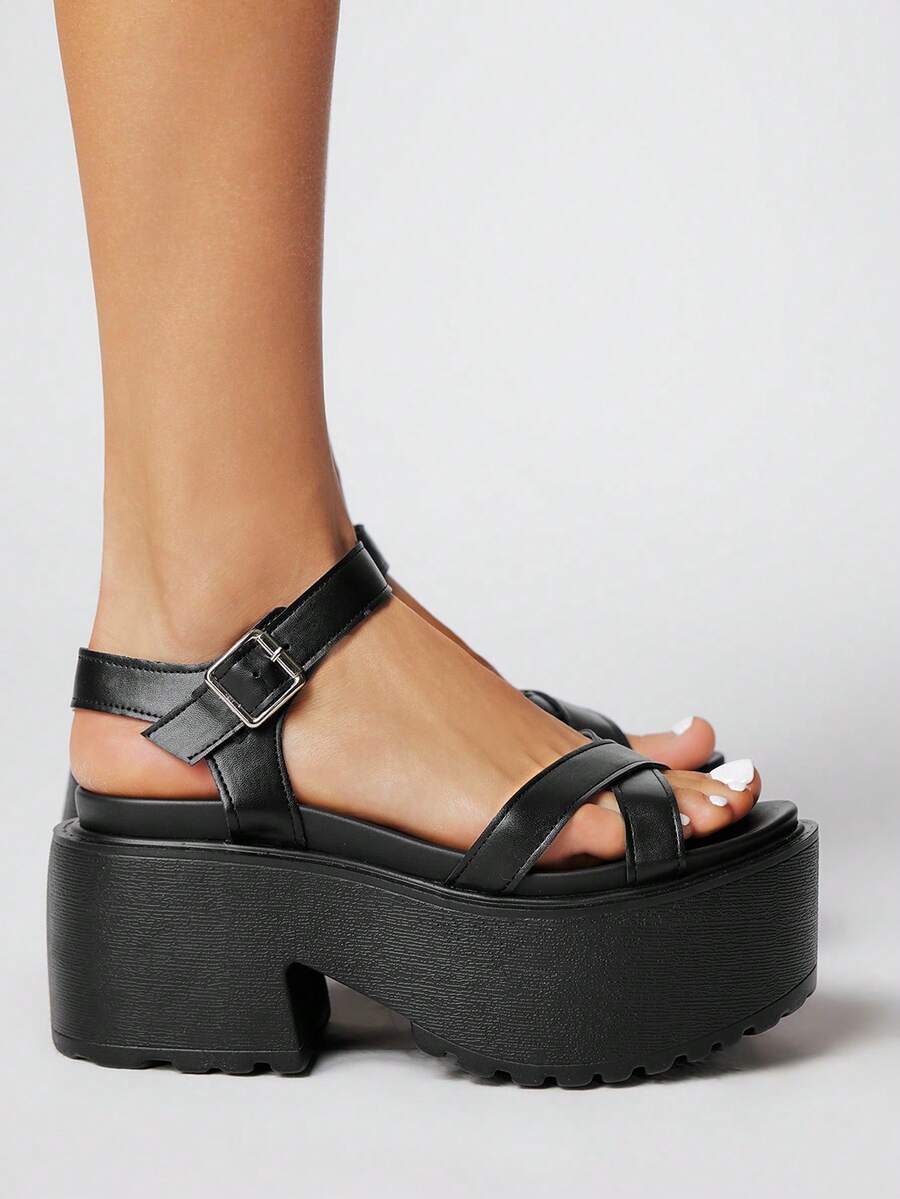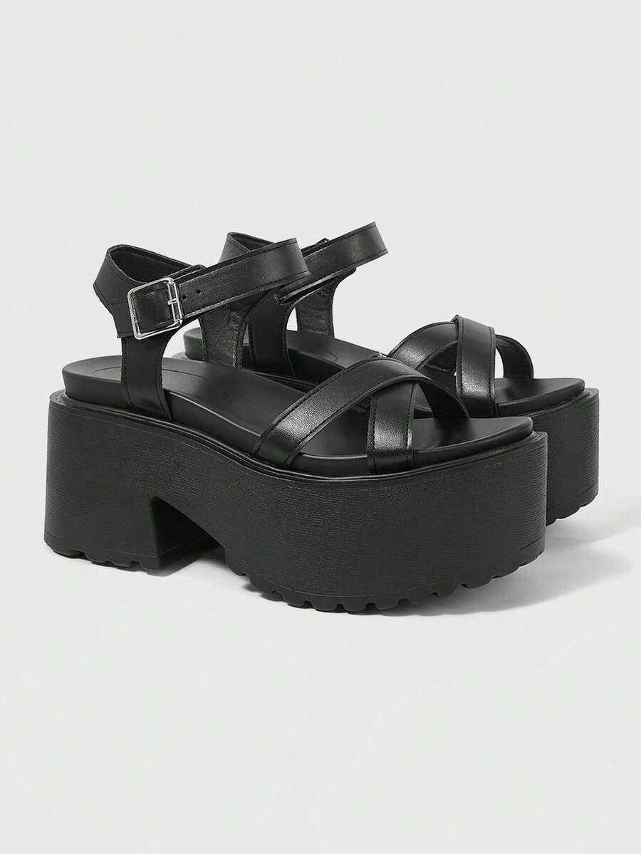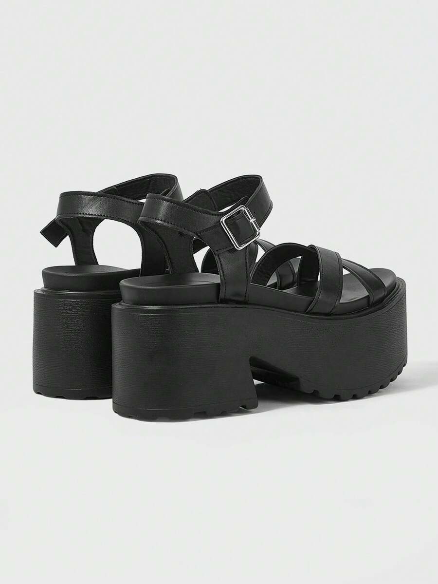 Goth Sandalias góticas oscuras estilo punk rock para mujer con correas cruzadas, sandalias de playa romanas, zapatos de vestir con hebilla en la correa, sandalias de plataforma con cuña