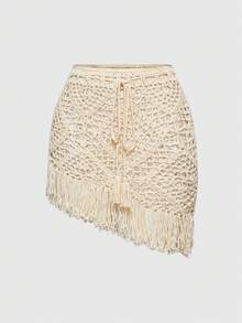 Fairycore Falda hecha a mano de estilo vacacional con flecos, en estilo fairycore para mujeres