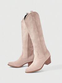 Kawaii Botas occidentales de tacón grueso con punta puntiaguda y bordado, nuevas para primavera/otoño 2025. Nuevas botas por encima de la rodilla para primavera/otoño