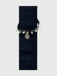 Grunge Punk 1 par de calentadores de piernas de moda vintage para mujer en color negro con decoración de cadena