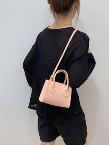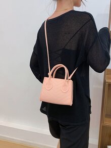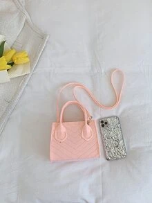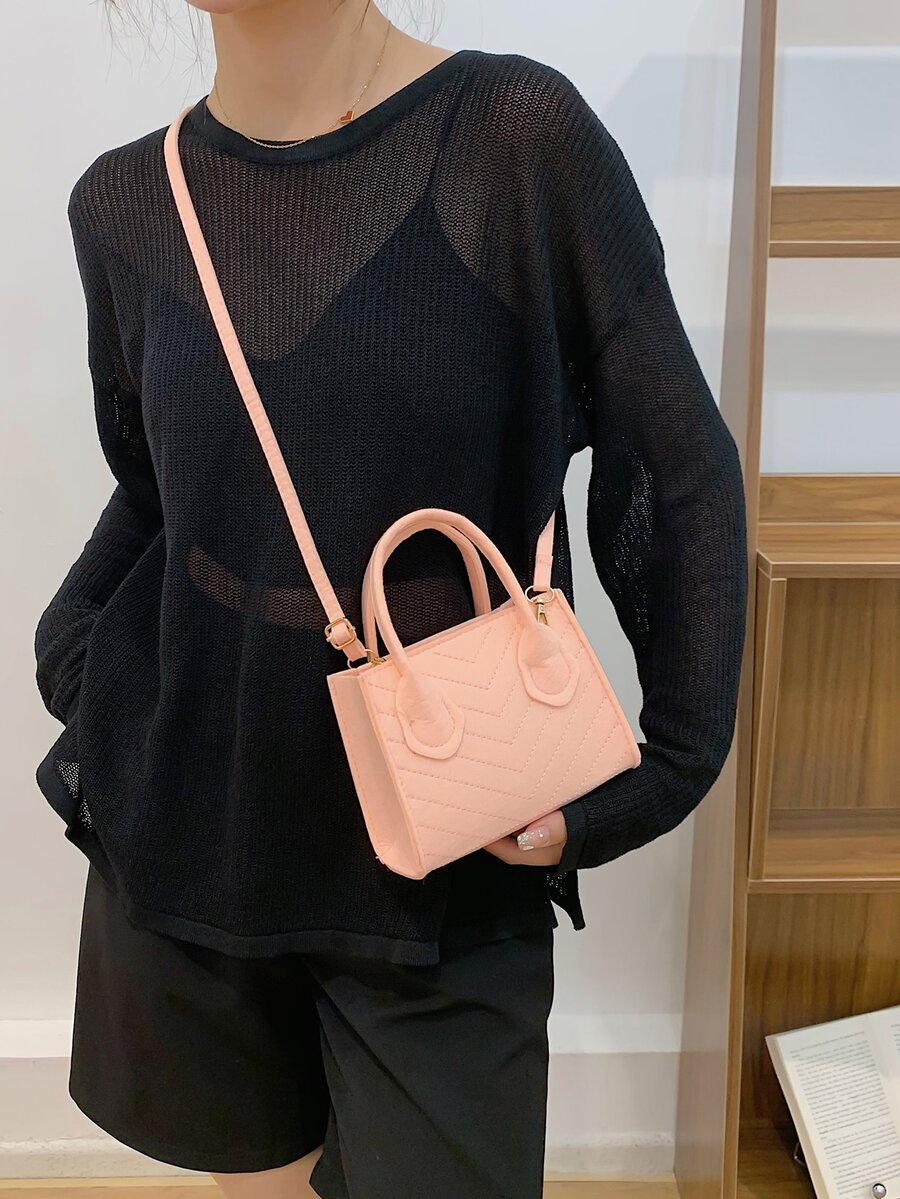 Bolsa cuadrada mini con patrón de cheurón doble asa para diariamente