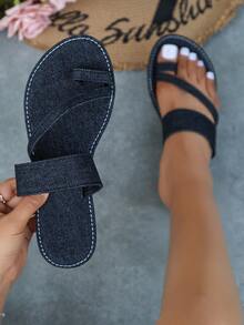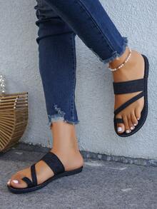 Mujer unicolor Anillo de dedo Tanga minimalista exterior Sandalias planas