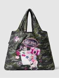 Bolsa de compras con gráfico de letra, bolsa escolar, de gran capacidad, clásica y casual, plegable, portátil, adecuada para adolescentes, mujeres, estudiantes universitarios y trabajadores de cuello blanco, perfecta para volver a la escuela, el primer día de clases, la escuela secundaria y las compras Grunge Punk Bolso de hombro para mujer, bolso de mano, color rosa, estilo punk, gótico, con herrajes en forma de cruz y decoración de estrella de cinco puntas, de moda, personalizado, sencillo, versátil, de calle, dulce y fresco para chicas, chicas calientes, Y2K, remaches, adolescentes, Halloween