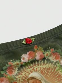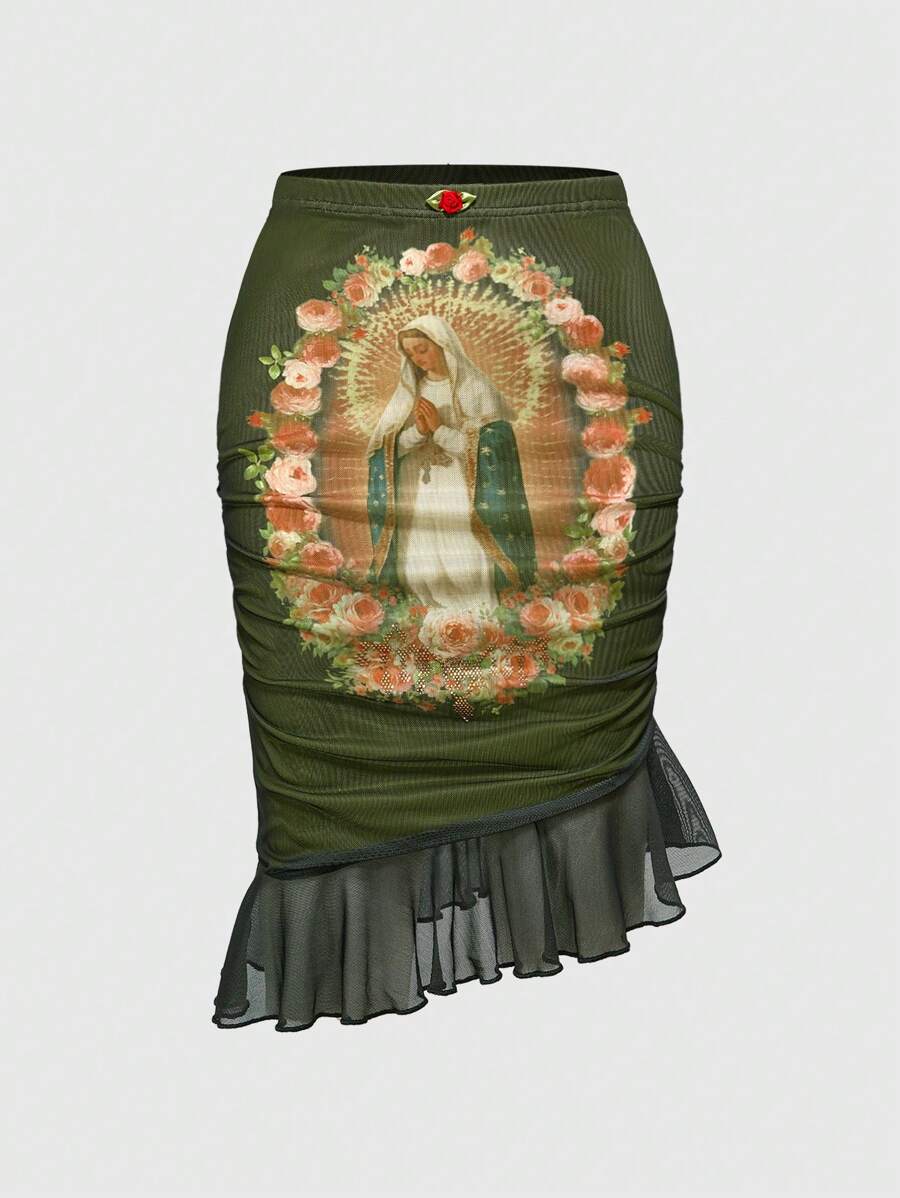 Fairycore Falda de media longitud de mujer con estampado de la Virgen María en estilo vintage y malla