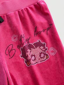 Betty Boop | ROMWE Pantalones sueltos de tiro bajo con bloques de color y rhinestones para mujer estilo Y2K