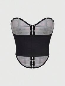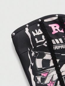 Top corto ajustado con estampado total y costuras en espina de pescado