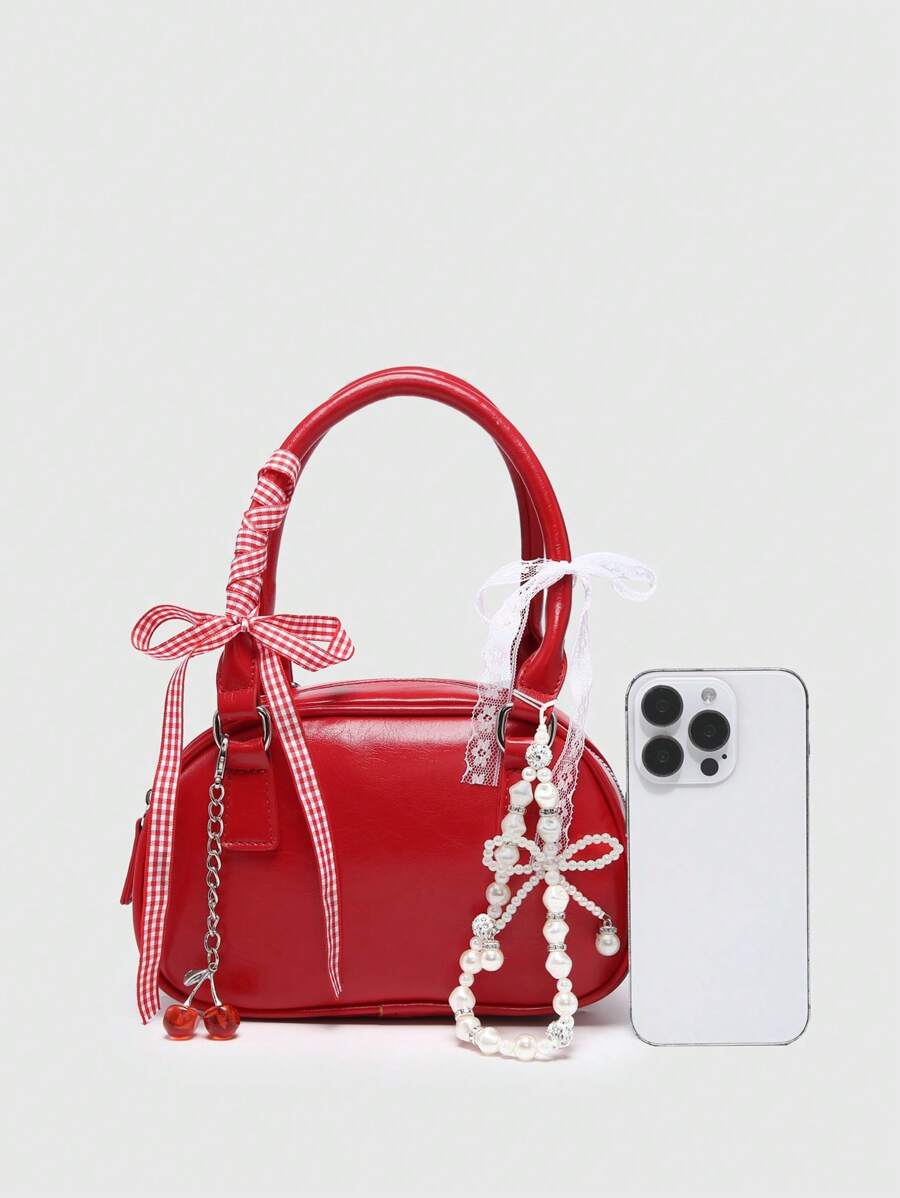 Bolso de mano mini con decoración de lazo, perla y cereza en estilo ballet para mujer