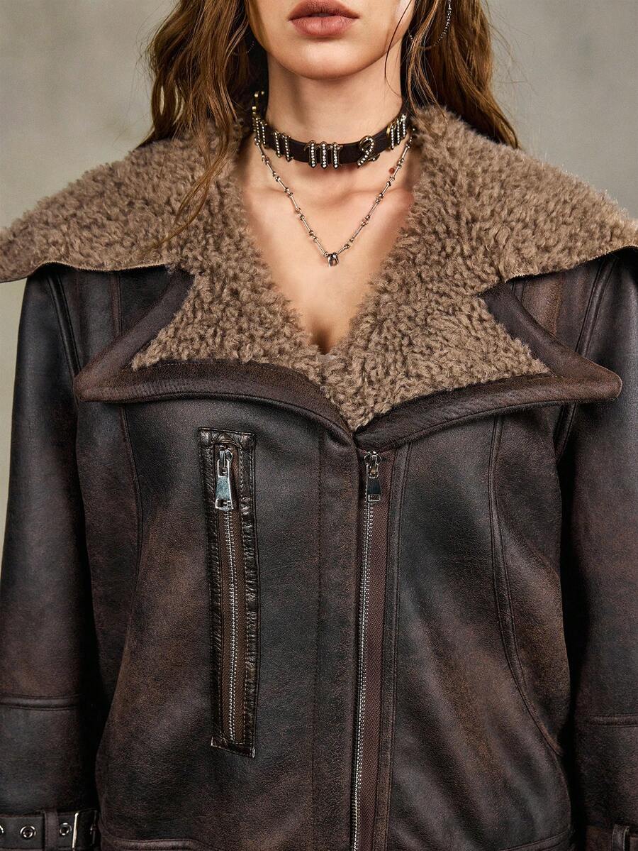 Chaqueta vintage desgastada de mujer con estilo Y2K grunge PUNK