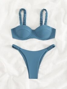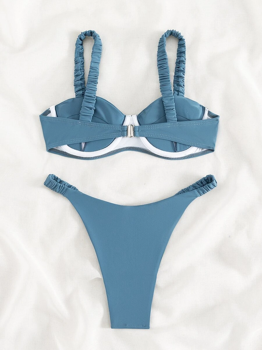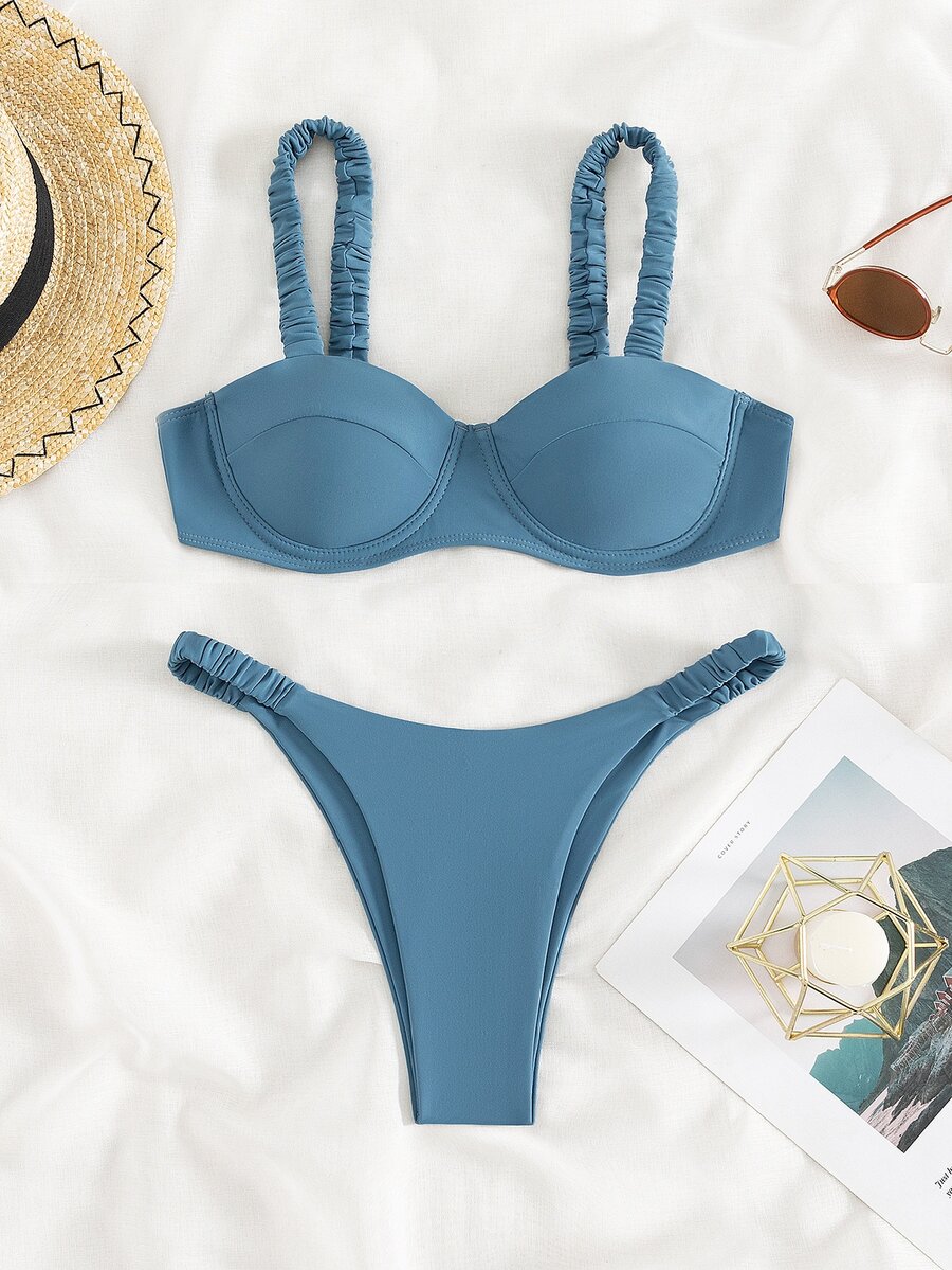 Conjunto de bikini sexy de unicolor para mujer, verano