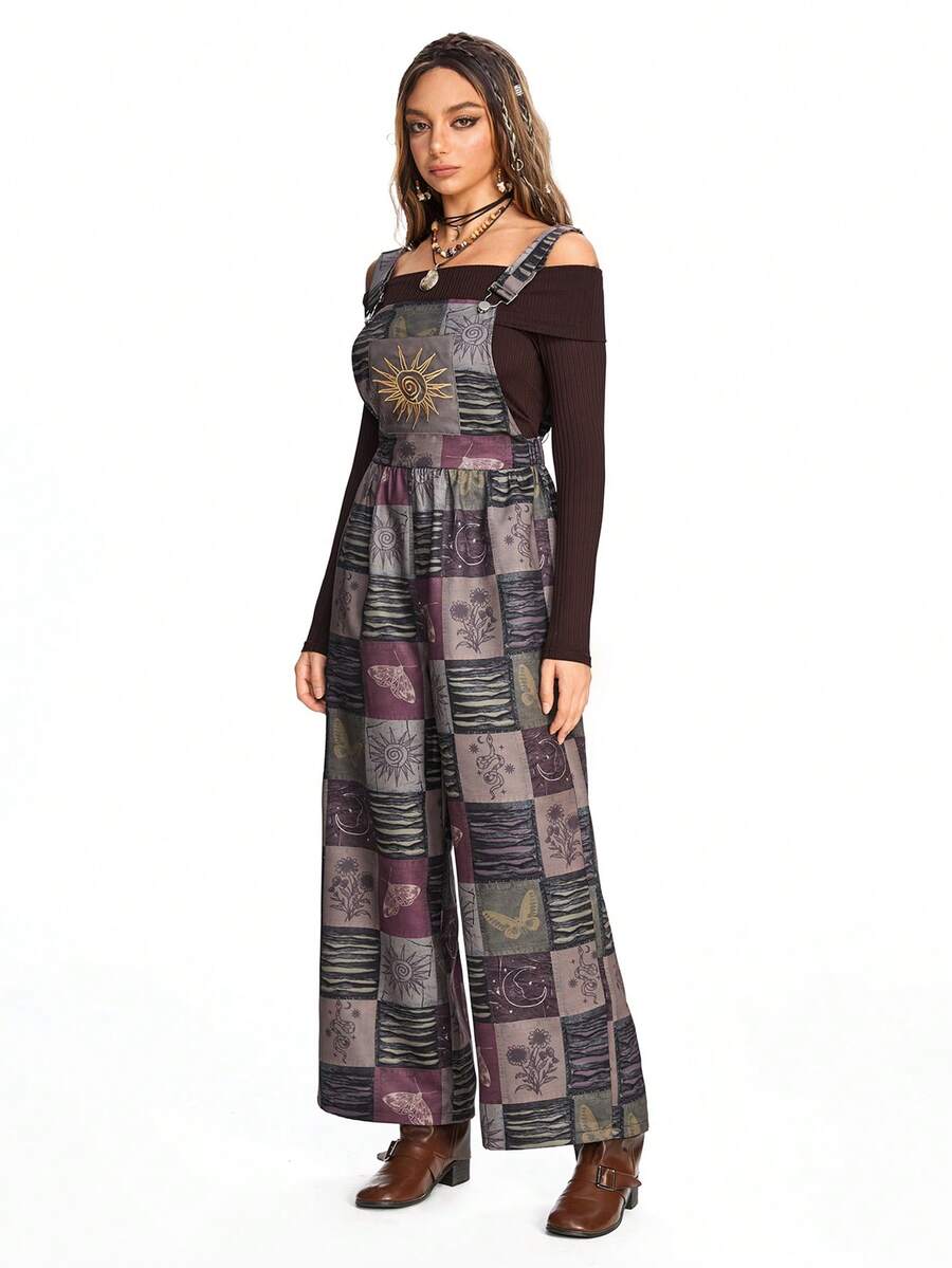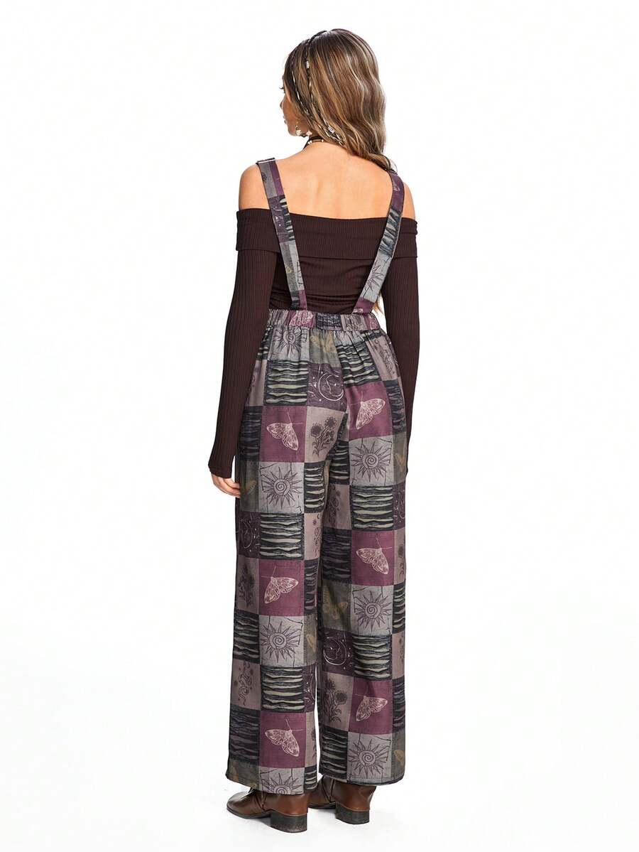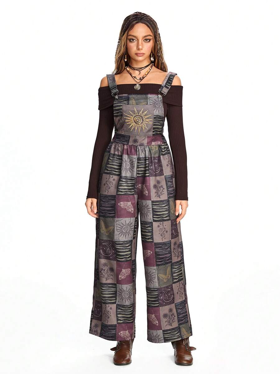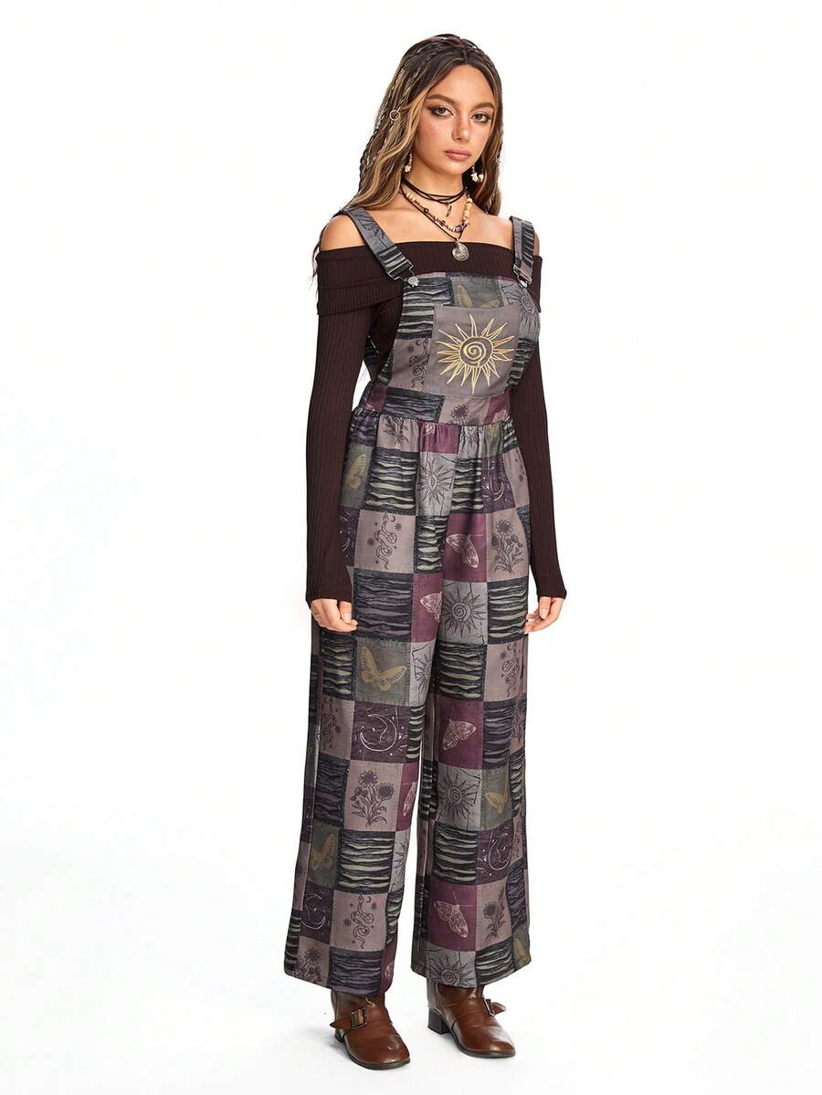 Mono con estampado de cuadros tipo hippie y girasol de polilla para mujer
