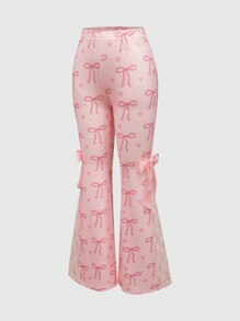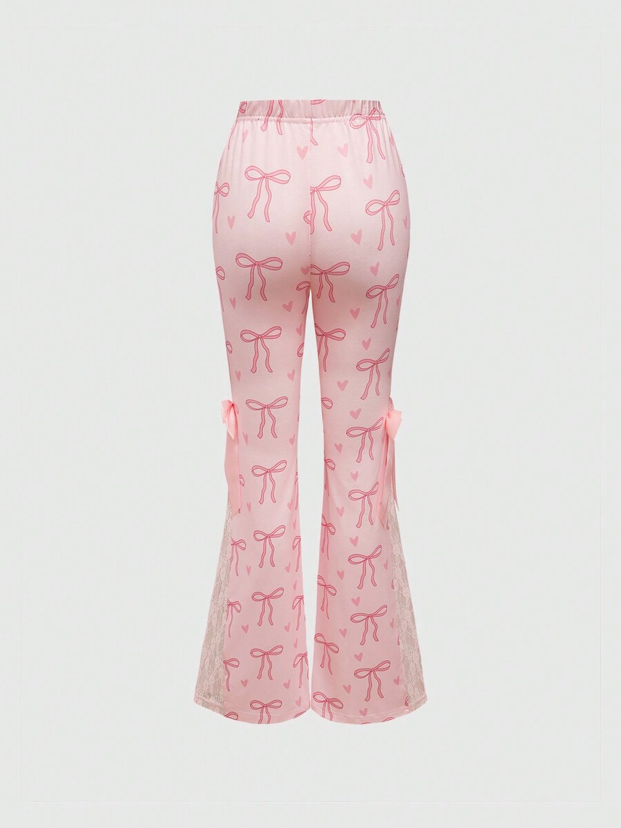 Pantalones acampanados con lazo sobredimensionado de encaje rosa para mujer