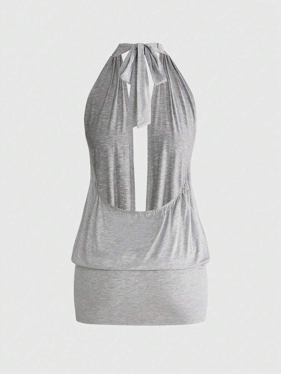 Vestido de fiesta de fecha de moda con cuello halter y lazo de unicolor para mujer