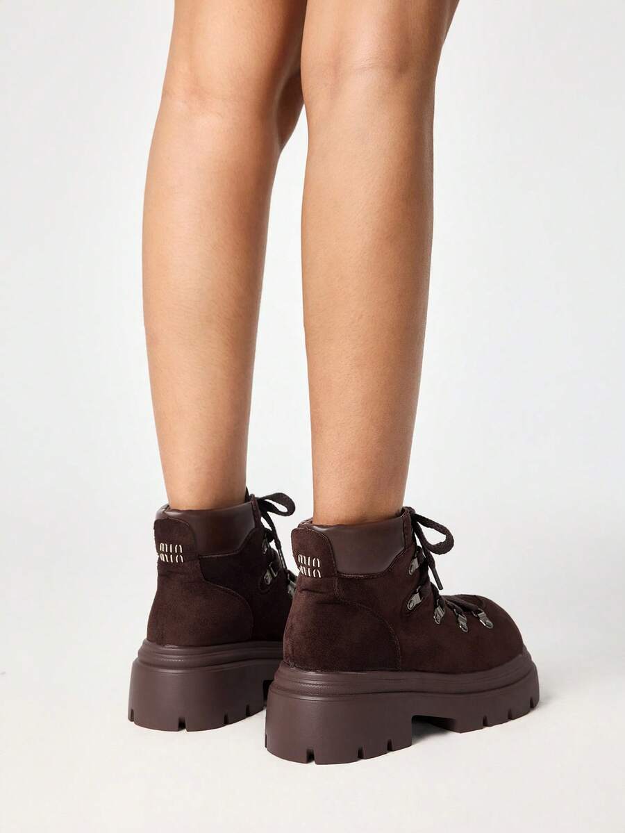 Botas de tobillo de motocicleta casuales con suela gruesa para mujer