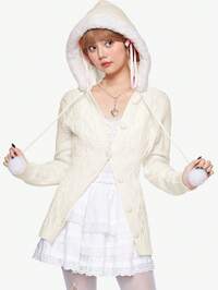 Kawaii Cárdigan con capucha, parches y flecos lindo y dulce para mujeres