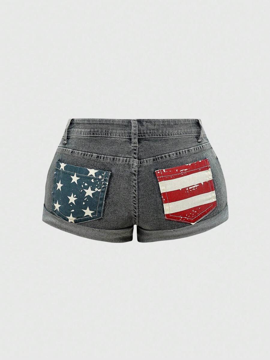 J-Fashion Shorts vaqueros de talla grande con estampado de bandera y estrella, estilo Y2K Baddie