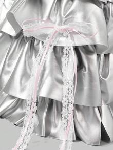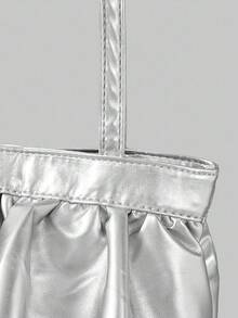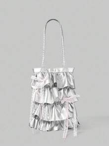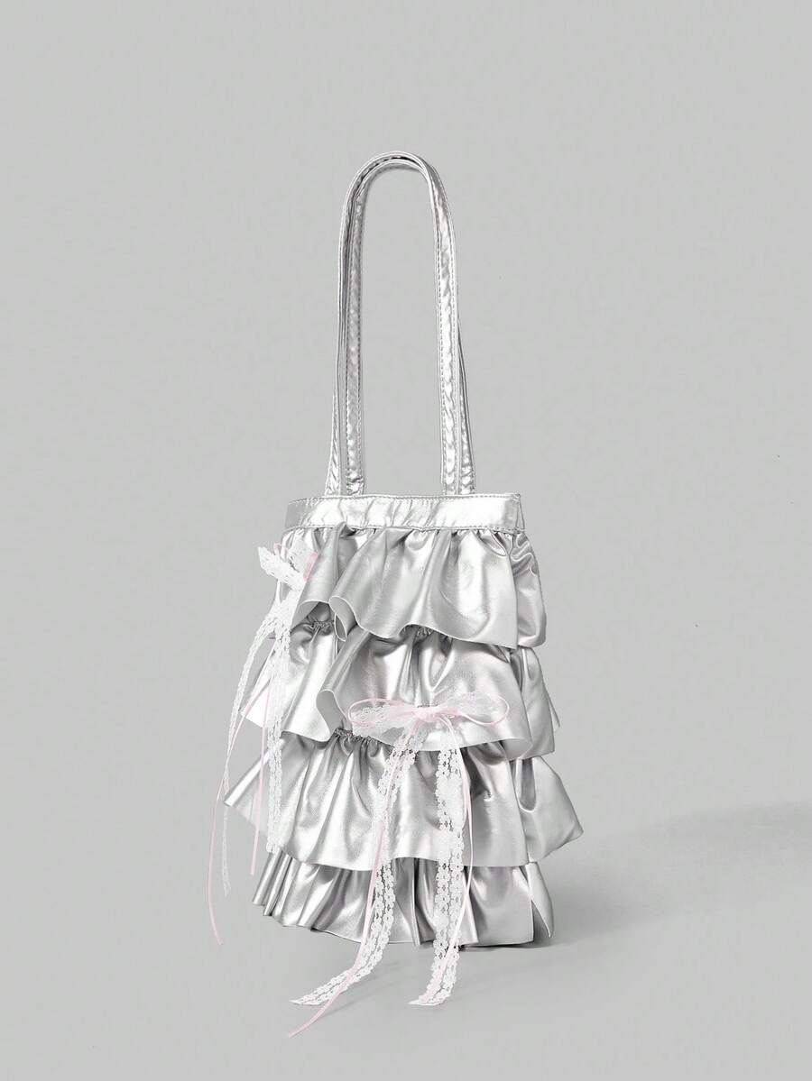 Grunge Punk Bolso de hombro de moda para mujer con decoración de lazo, estilo Y2K lindo y sexy, minimalista plateado, estilo chic con cordón, versátil para citas, viajes casuales, compras, viajes diarios