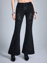 Goth Jeans ajustados con efecto acampanado y diseño calado gótico