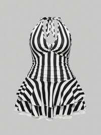 Fairycore Vestido elegante de talla grande para verano con estampado de dragón, escote halter y espalda descubierta