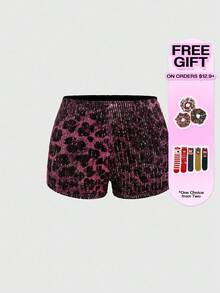 Grunge Punk Shorts mini de talle súper bajo con estampado de leopardo y adornos de lentejuelas para mujer, estilo Y2K