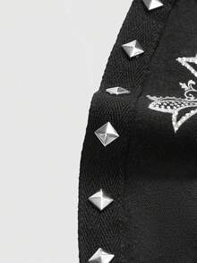 Goth Camiseta corta escotada con estampado de cruz gótico, adornada con cristales y remaches en estilo Y2K