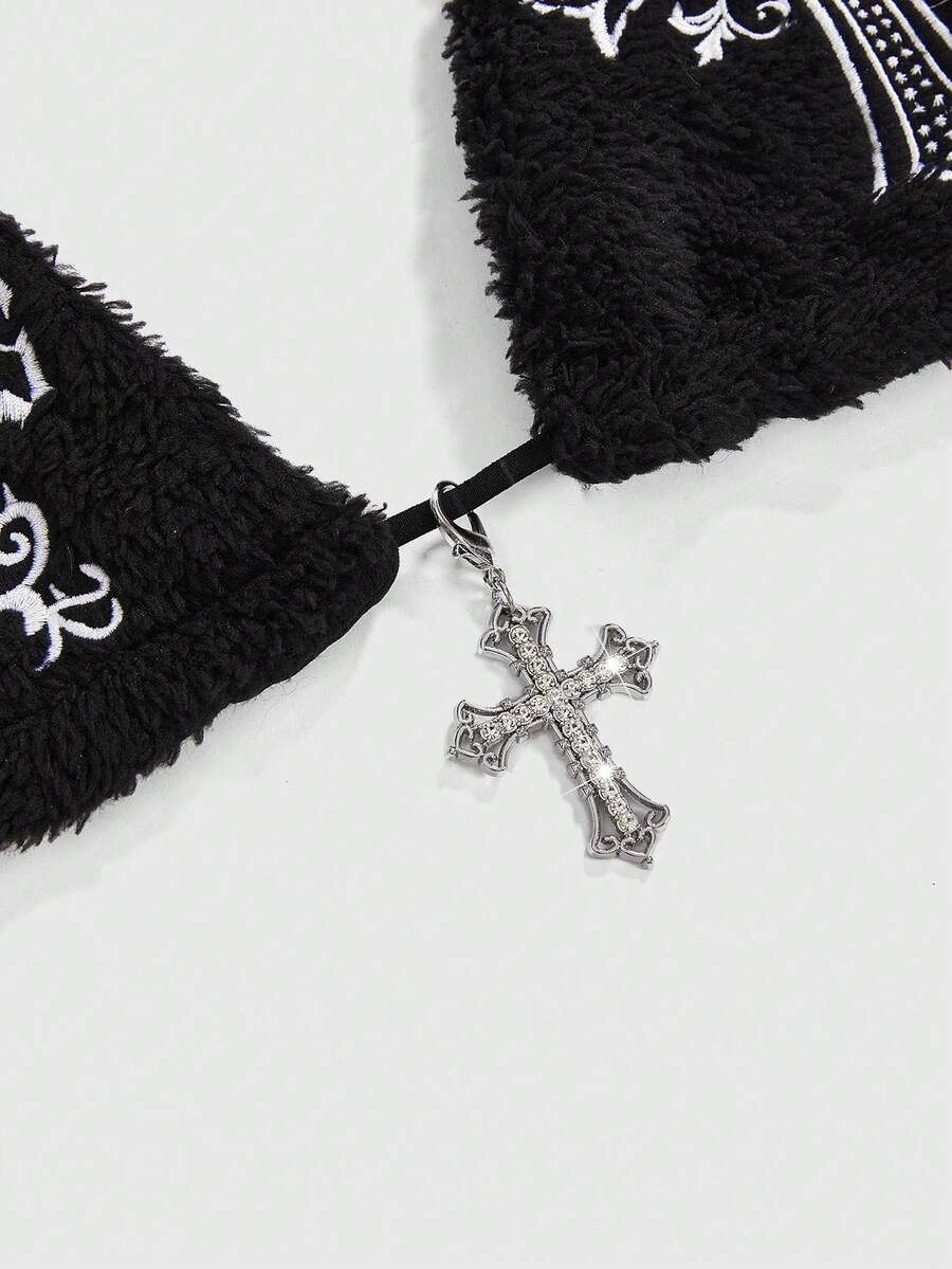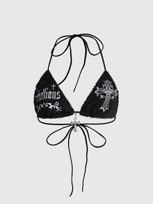 Goth Camiseta de tirantes con estampado de cruz gótica y rhinestones, estilo Y2K sexy
