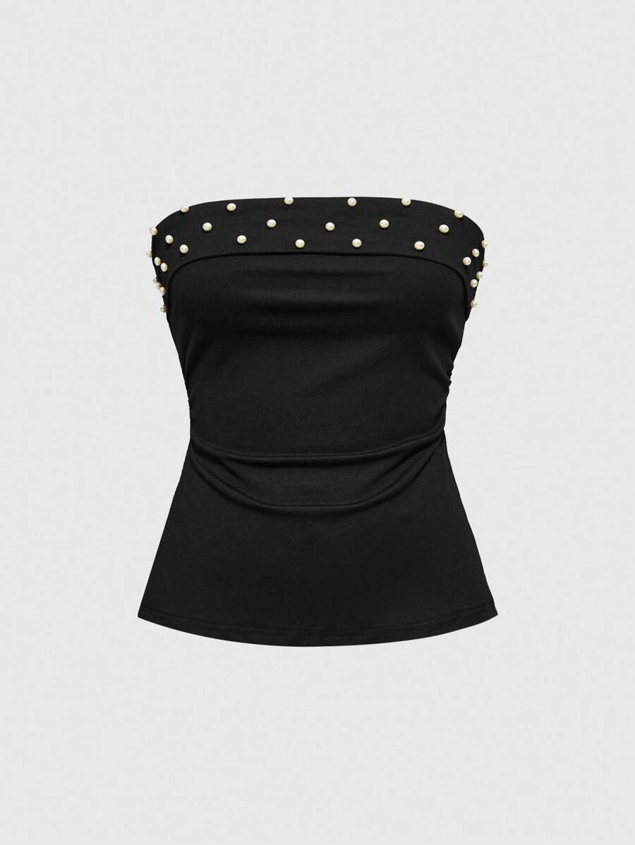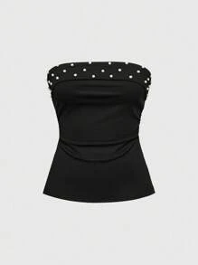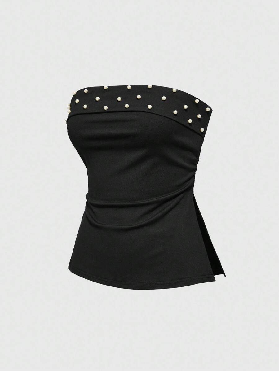 Top corto de camisola con abertura lateral, decorado con tachuelas y perlas falsas, estilo Y2K para mujeres