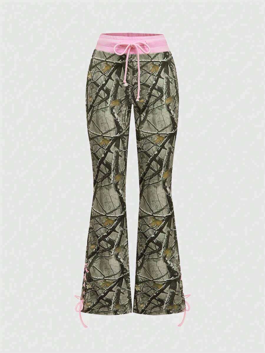 Conjunto de 2 piezas de sudadera con estampado de camuflaje y contraste de colores, estilo Y2K, moda callejera para otoño/invierno