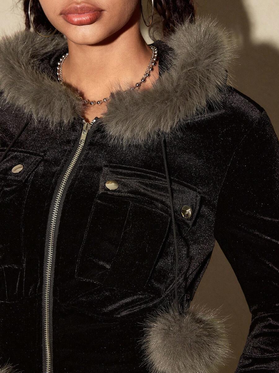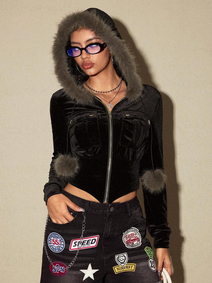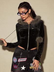 Grunge Punk Cárdigan ajustado con cuello de terciopelo de estilo vintage subcultura Y2K para mujeres