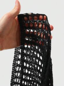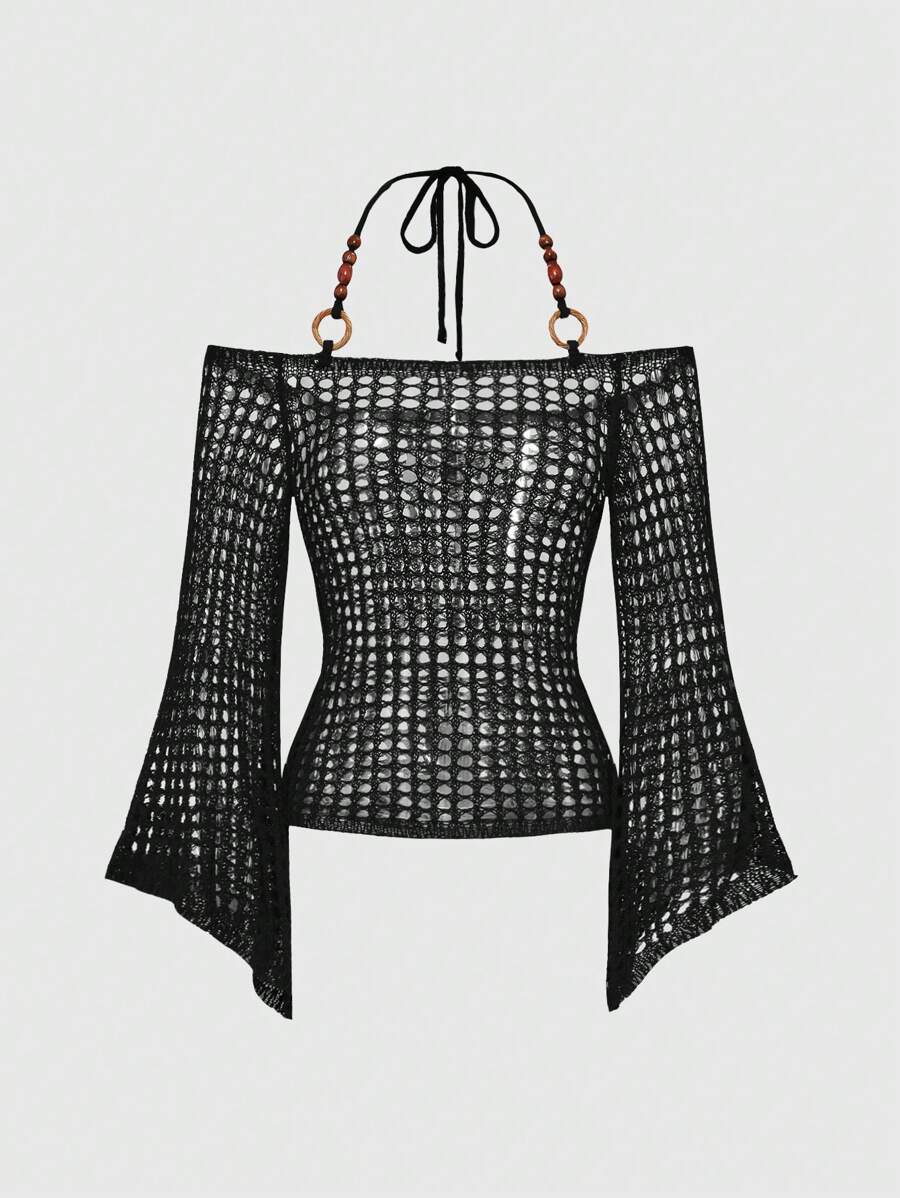 Fairycore Suéter de punto holgado con decoración de cuentas de madera con diseño perforado, versátil, estilo Vintage Y2K