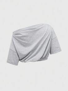Street Life Blusa corta recortada con estampado vintage de retazos tipo Y2K para mujeres, estilo deportivo casual con hombro asimétrico y sexy