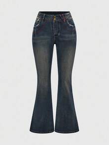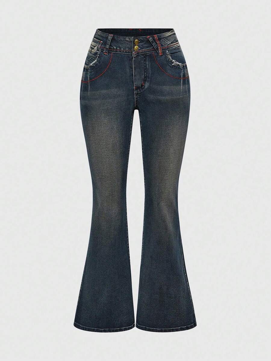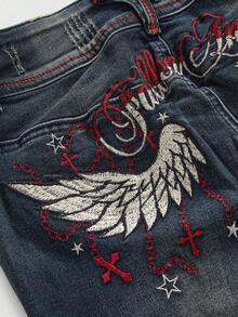 J-Fashion Jeans de talle bajo de estilo vintage con bordado de alas y cruz, talla grande, estilo Y2K