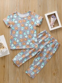 Camiseta Con Estampado De Galletas Y Leche Para Niño Joven Con Pantalones