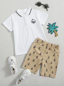 Camiseta De Polo Con Diseño De Barco De Vela Para Niño Joven Con Pantalones Cortos