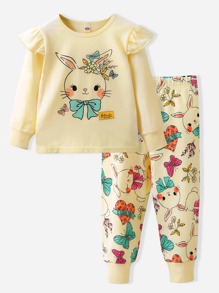 Conjunto de pijama para niña joven con diseño gráfico de dibujos animados y volantes