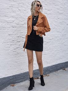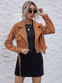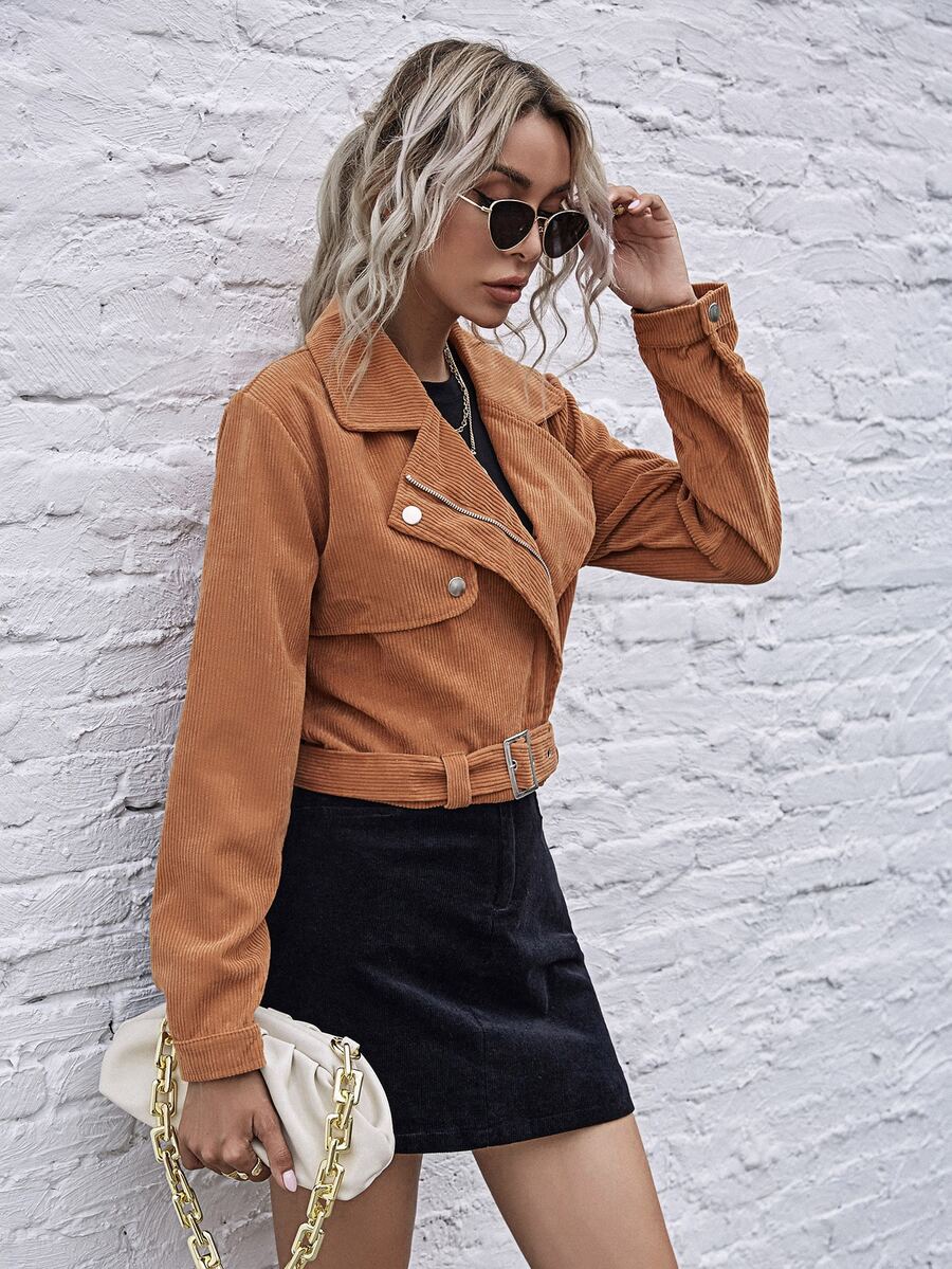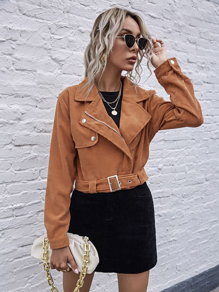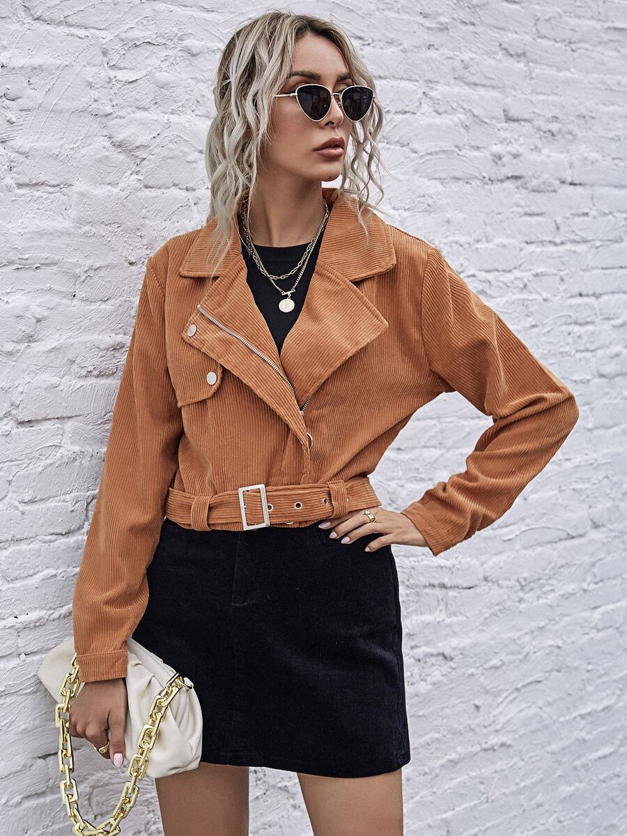 Chaqueta biker de pana con cinturón con cremallera