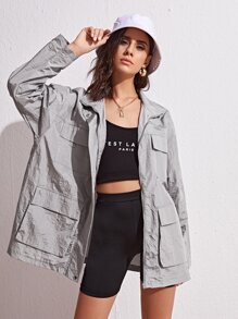 Rompevientos con cremallera con bolsillo con solapa amplio