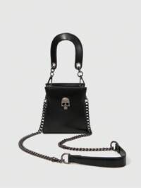Goth Nuevas llegadas Bolso de hombro de mujer con cadena de estilo punk, bolso cruzado negro decorado con calaveras