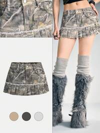 J-Fashion Minifalda de mezclilla de cintura baja con pliegues y parches de camuflaje