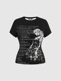 Anime Camiseta de manga corta de ajuste ceñido con eslogan y gráfico de retrato, de moda y de talla grande, para el verano