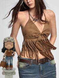 Grunge Punk Top de tirantes con cuello halter y flecos de gamuza, estilo hippie para festivales de música para mujeres