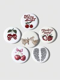 Anime 6 nuevos modelos de primavera Y2k, estilo retro estadounidense dulce y fresco. Conjunto combinado de broches y colgantes decorativos con estampados de barritas, letras inglesas, ojos, hojas, ciervos, alas de ángel y dragón, adecuado para uso diario de hermanas, novias, amigas, parejas, niñas y mujeres, también como regalo para fiestas.